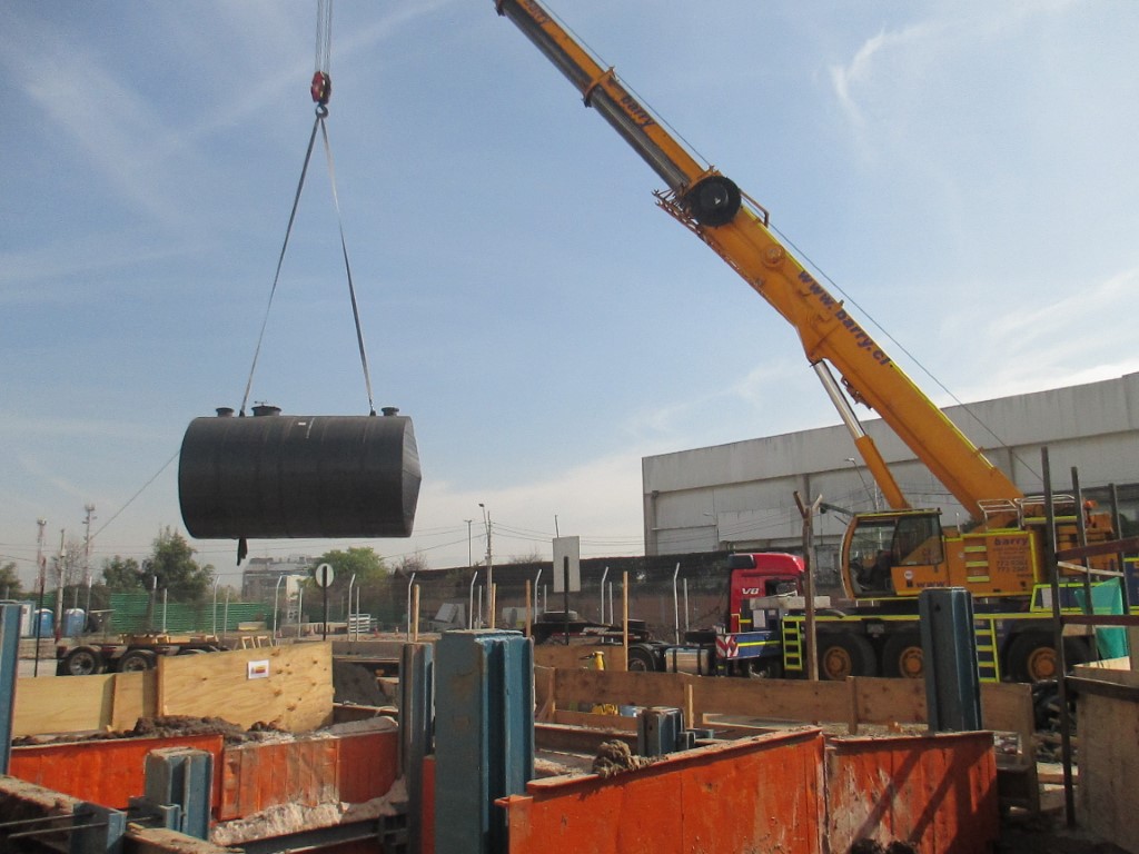 Instalación de Estanques de Combustible: Se instalaron dos estanques de combustible en los patios mecánicos y eléctricos, ubicados bajo cota cero. Este complejo proceso requirió excavaciones profundas y la implementación de sistemas de entibaciones metálicas para garantizar la seguridad y estabilidad estructural.