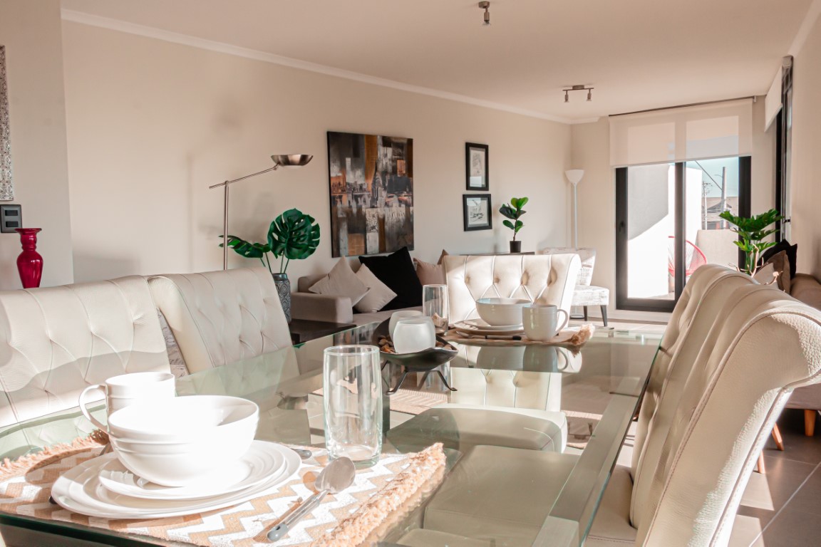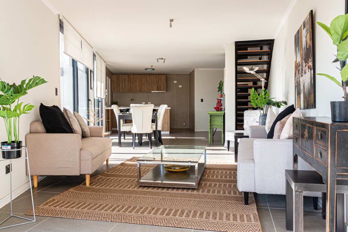 Revestimientos Interiores: Piso Porcelanato en zonas comunes y baños, proporcionando durabilidad y un acabado de alta calidad. Alfombra en Dormitorios, añadiendo confort y calidez a los espacios más íntimos del hogar. Revestimiento de Muro Cerámico en baños y cocina, fácil de limpiar y altamente resistente, asegurando funcionalidad y estética. Cocinas de Ensueño: Equipadas con muebles de cocina con cubierta de granito y artefactos incluidos, estas cocinas están diseñadas para ofrecer practicidad y estilo a los residentes.